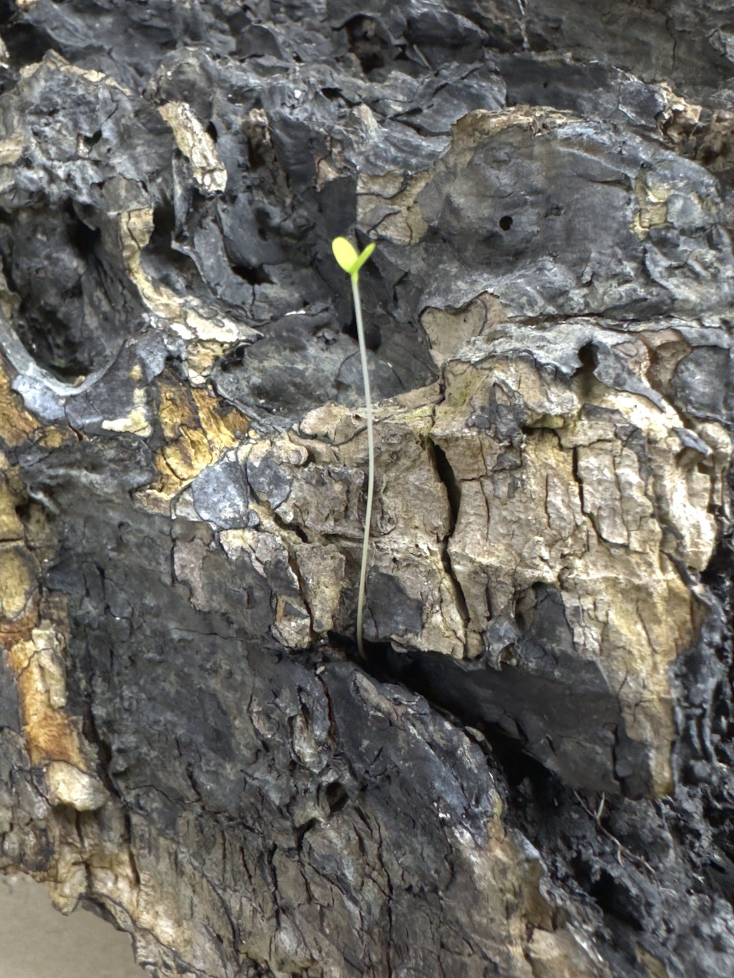 In my workshop, a piece of driftwood has been resting for months—quiet, dry, waiting for its future form. Then one morning, from its weathered surface, a fresh green shoot appeared. Life, unbidden, rising in its own time.